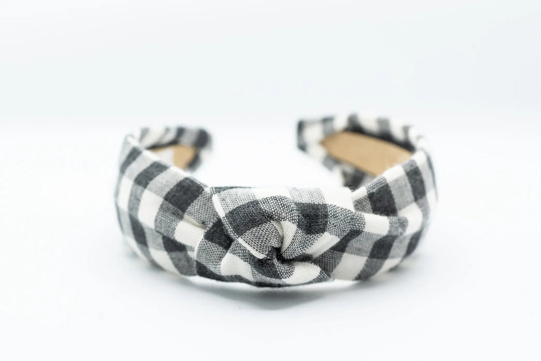 Black Check Knotted Headband