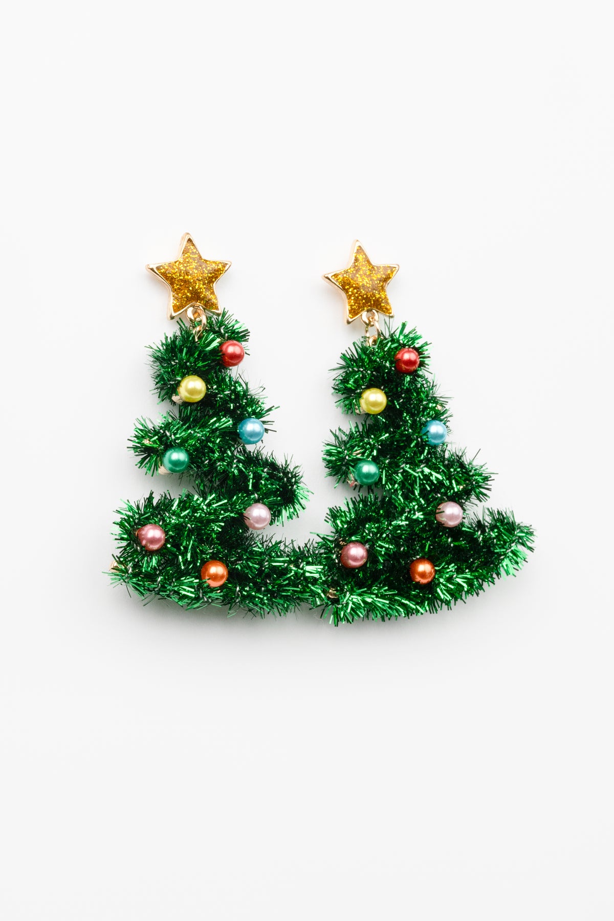 These Green Multi Christmas Tree Earrings deliver full holiday charm with textured greenery, tiny ornaments, and dimensional sparkle. Bold enough to celebrate the season, light enough for all-day wear.