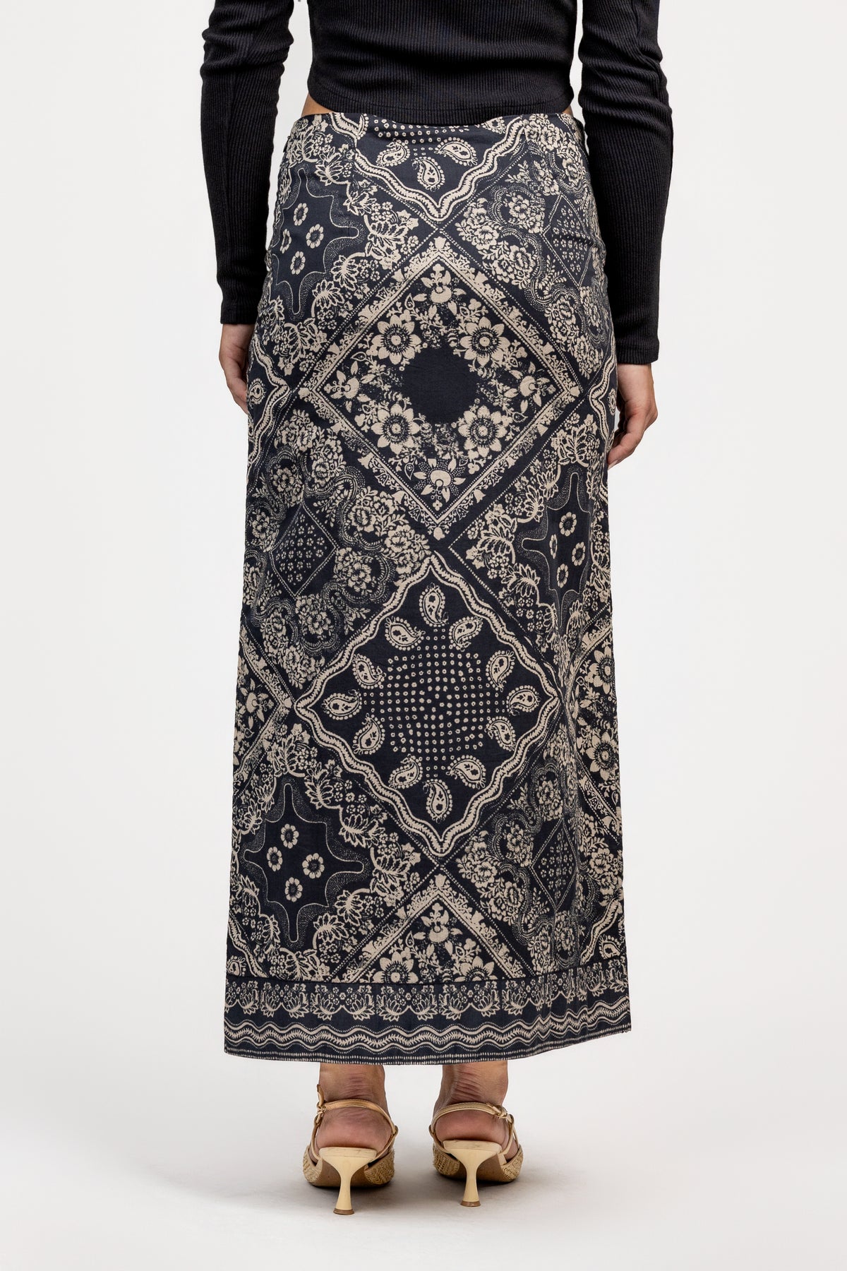 The Elise Scarf Print Josie Skirt stands out with its intricate scarf-inspired pattern and fresh, eye-catching color palette. Cut to a fluid midi length, it brings movement and elegance to any outfit—equally suited for polished pairings or effortless everyday wear.