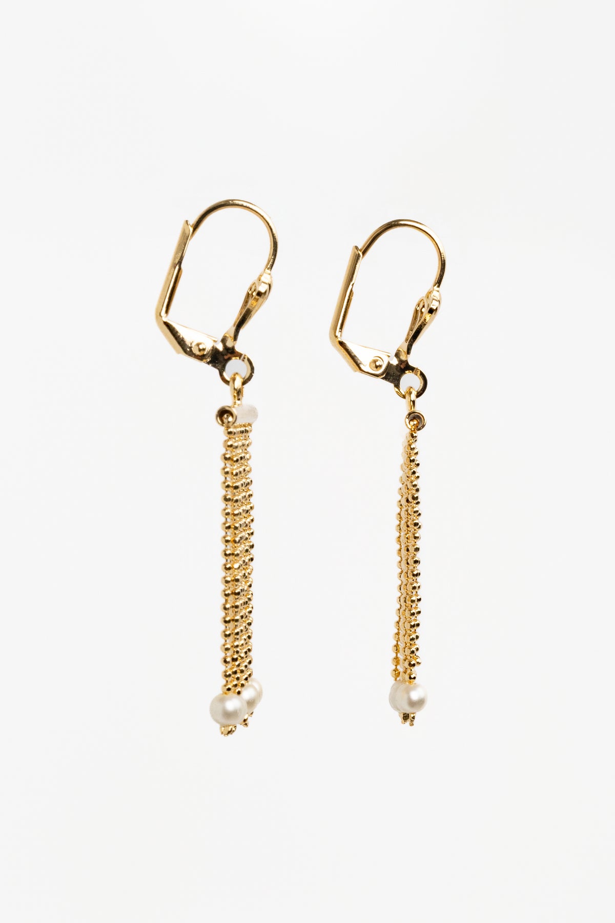 The Pearl Dangle Earrings bring movement and charm with a fringe of luminous pearls. Gold-filled hardware adds warmth and durability, giving these flirty drops an elegant finish that catches the light beautifully.