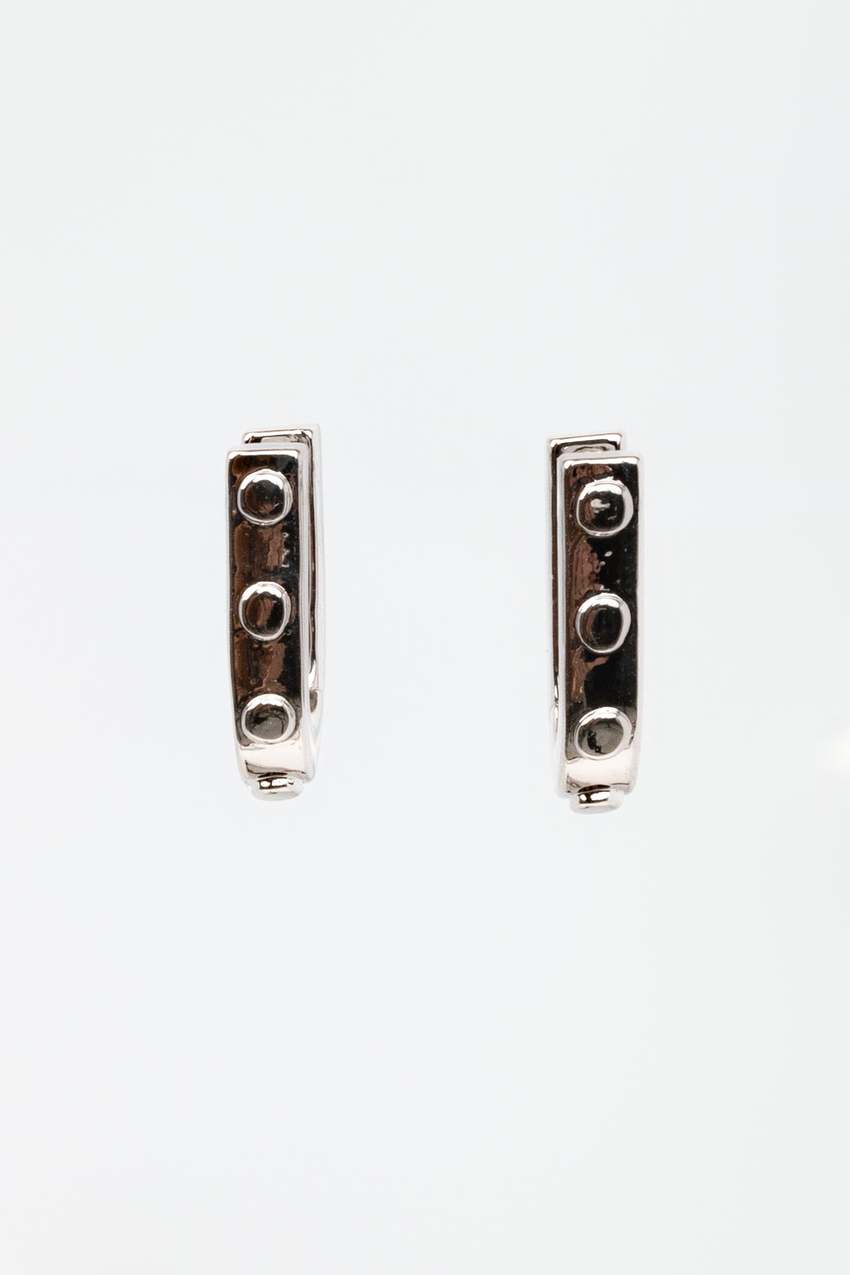 The Rhodium Asher Link Huggies are rock-and-roll inspired and eclectic while remaining neutral for daily wear. Pair these hoops alongside other earrings or hoops in tonal hues for a perfect everyday stack.