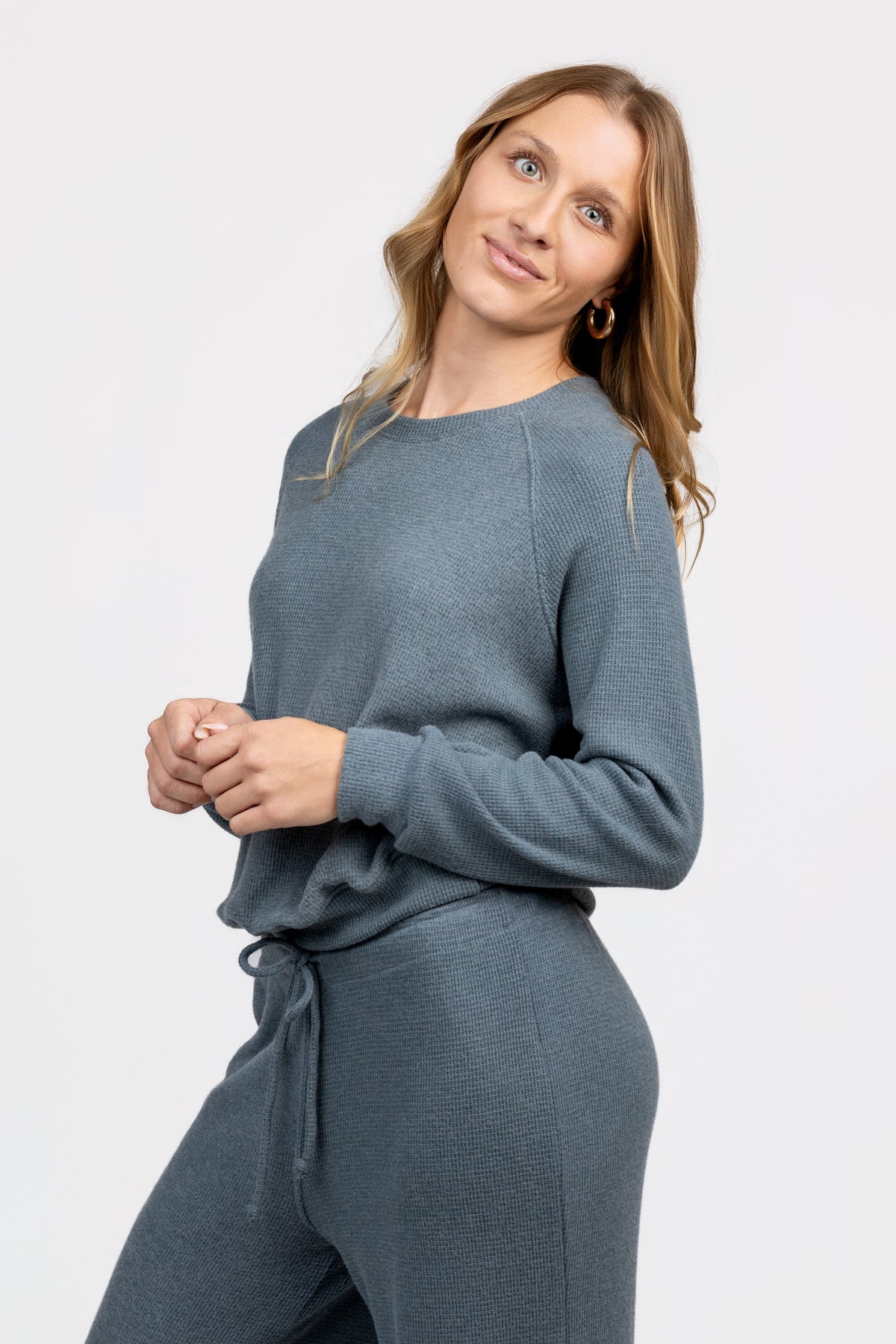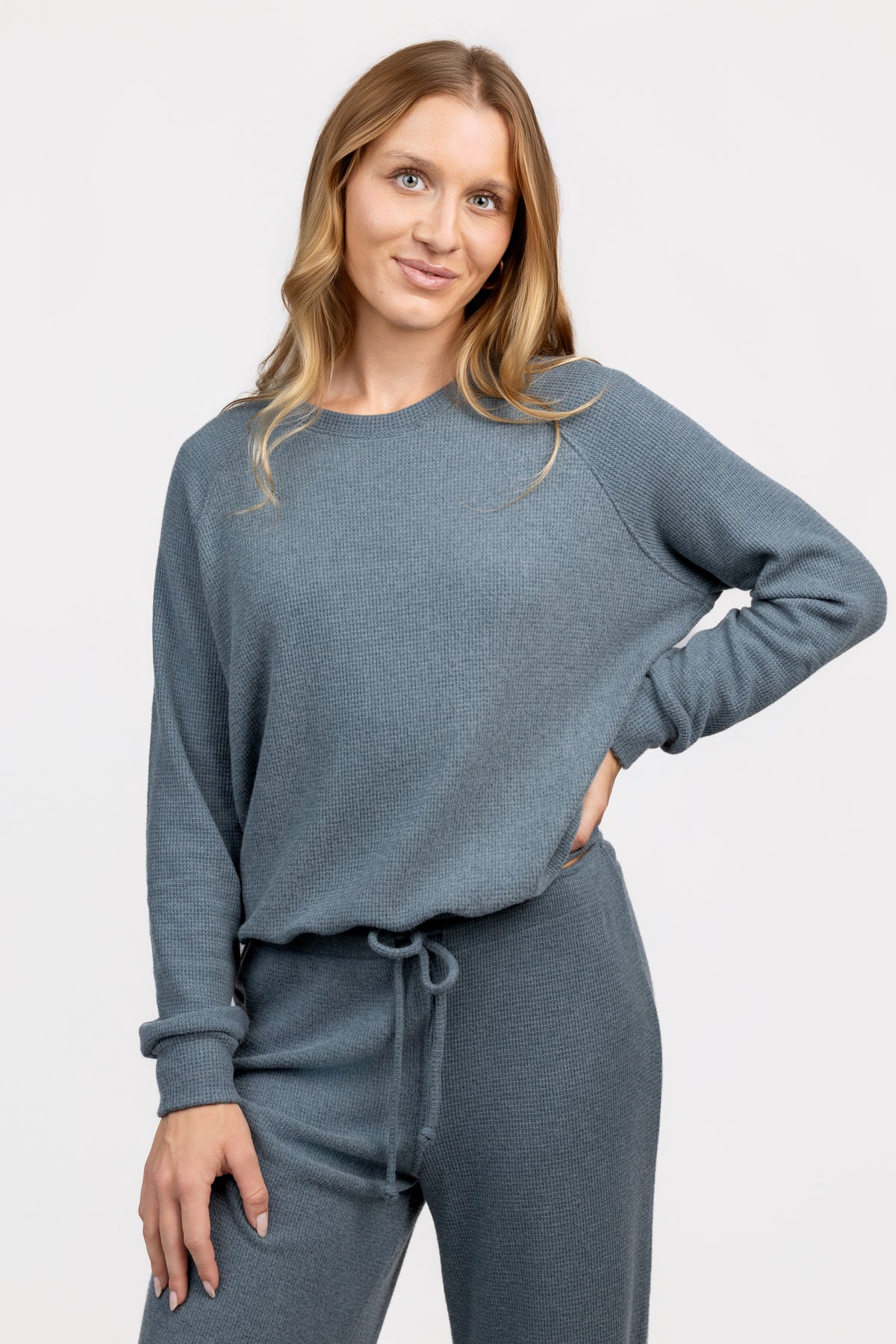 The Slate Blue Cooper Tee is vintage-inspired comfort with a modern edge. Raglan sleeves meet a banded waist that hits at your natural shape, while full-length sleeves with subtle bracelet finishes add effortless polish. Soft, wearable, and endlessly versatile, it’s the layer you’ll reach for again and again—whether it’s a crisp morning or a spontaneous outing.