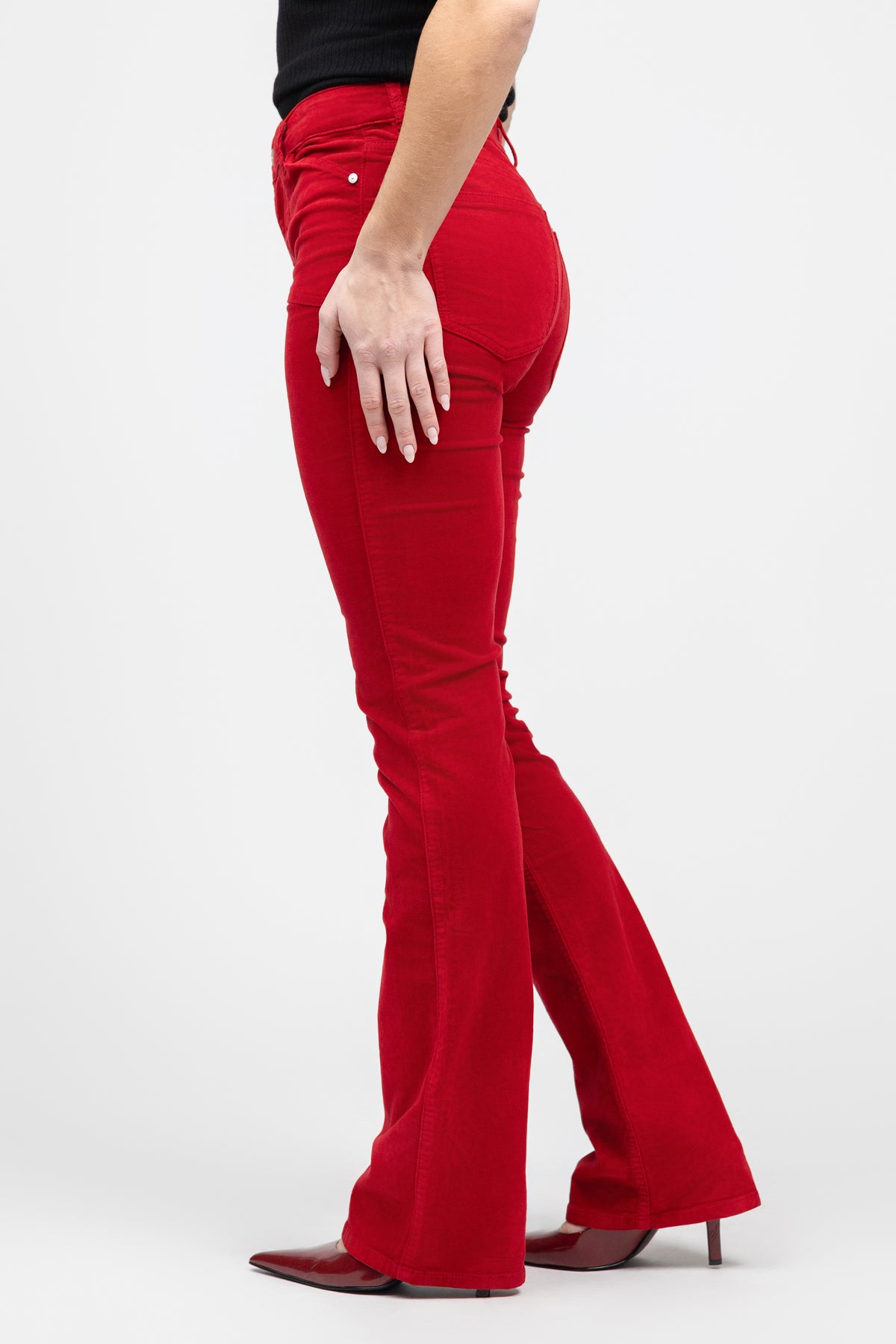 The Cherry Lacquer Bootcut Pant brings a sleek, velveteen finish to a timeless silhouette. Designed with a standard rise and subtle flare, it’s fitted through the hips for a flattering shape. Complete with a front zipper closure and four-pocket design for a polished, everyday edge.