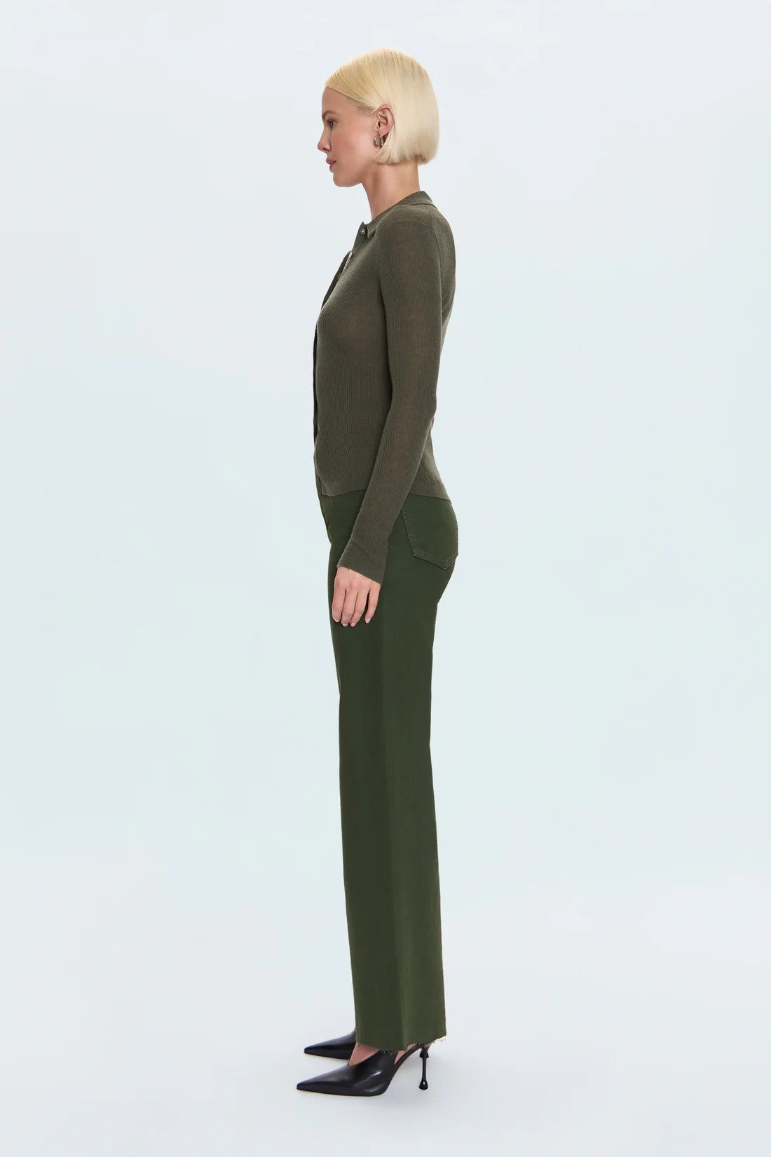 The Laurel Wide Leg Penny Jean offers a high-rise silhouette with an ultra-wide leg and a full-length 28" inseam that moves with clean, fluid ease. Designed without side seams, the fit creates a smooth, uninterrupted line that subtly elongates the frame. Cut in comfort-stretch denim that maintains its structure, the deep green Laurel wash adds a refined, understated touch to the classic wide-leg shape.