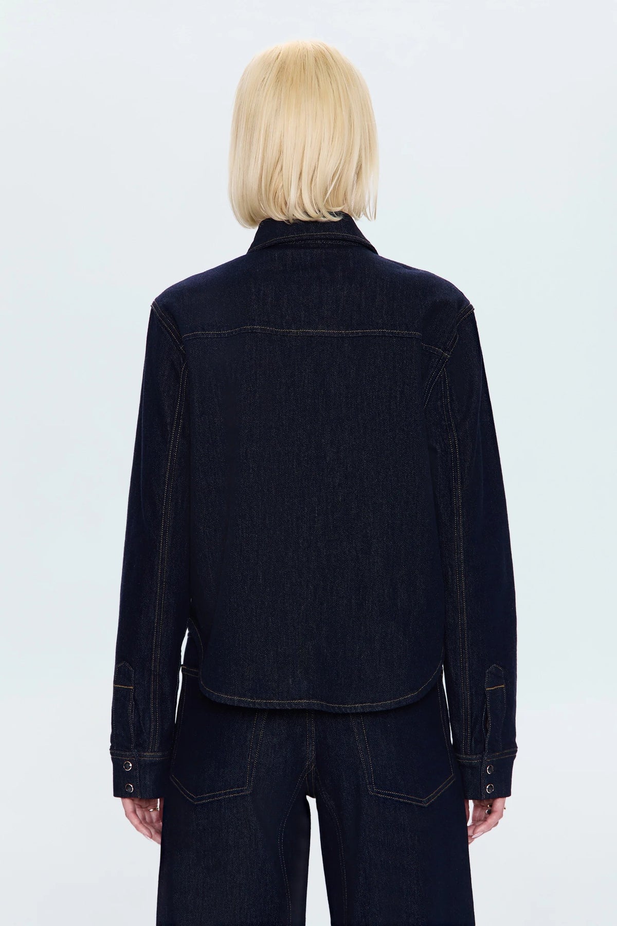 The Nightfall Thea Shirt is denim done with a modern point of view. A deep, dark rinse brings sleek refinement to its classic button-up design, while the shrunken silhouette keeps proportions sharp and current. Relaxed enough to layer but tailored enough to stand alone, it’s the kind of timeless piece that earns a permanent spot in your wardrobe.