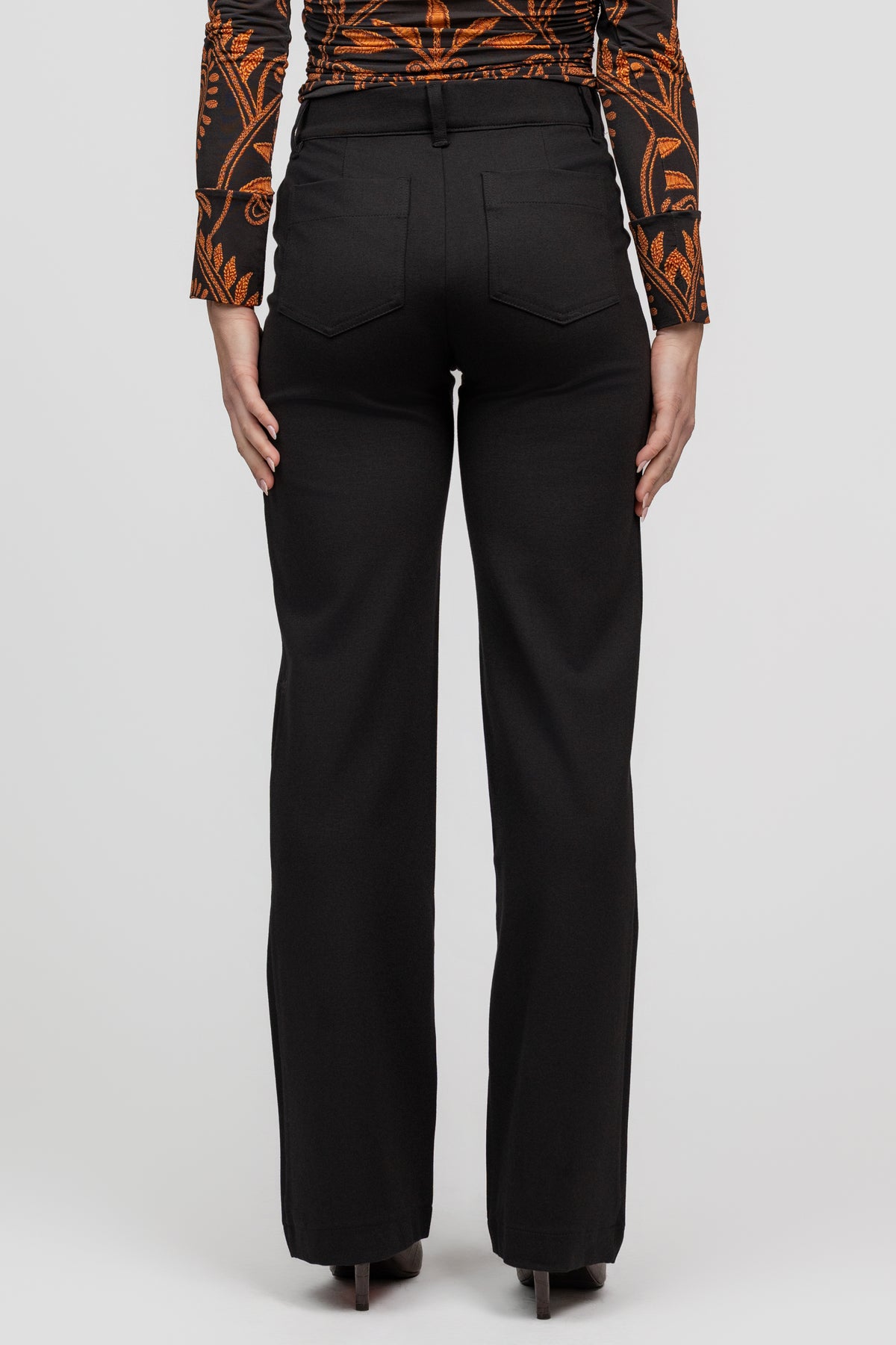 The Black Marine Ponte Pant keeps it classic with a standard rise and straight leg, finished with patch pockets and a clean zip-front closure. Sleek, structured, and built for all-day wear.