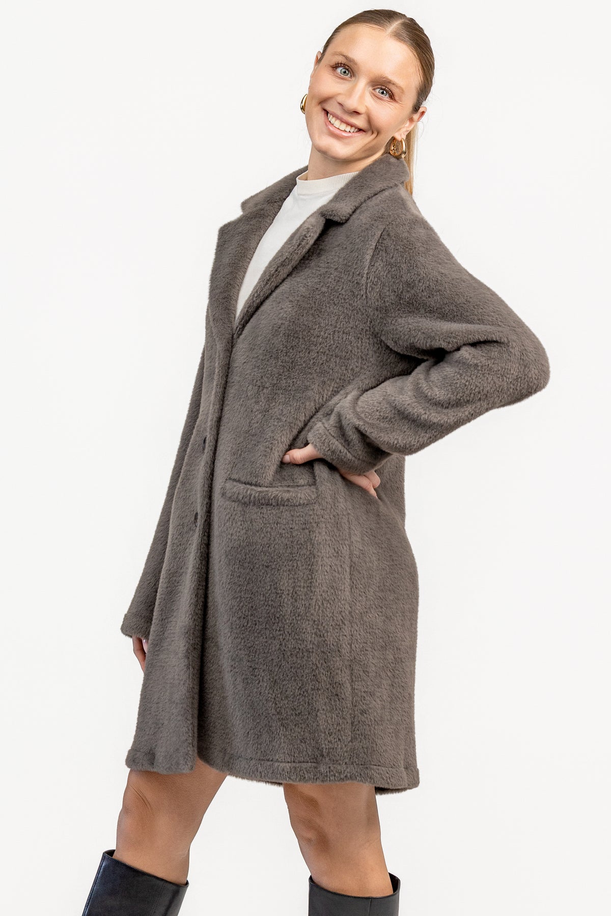 The Burnt Ink Hometown Jacket leans into structure with a relaxed attitude. Its longline cut and notched neckline keep the look sharp, while the weight and drape give it movement. Finished with a button front and deep pockets for everyday wear.