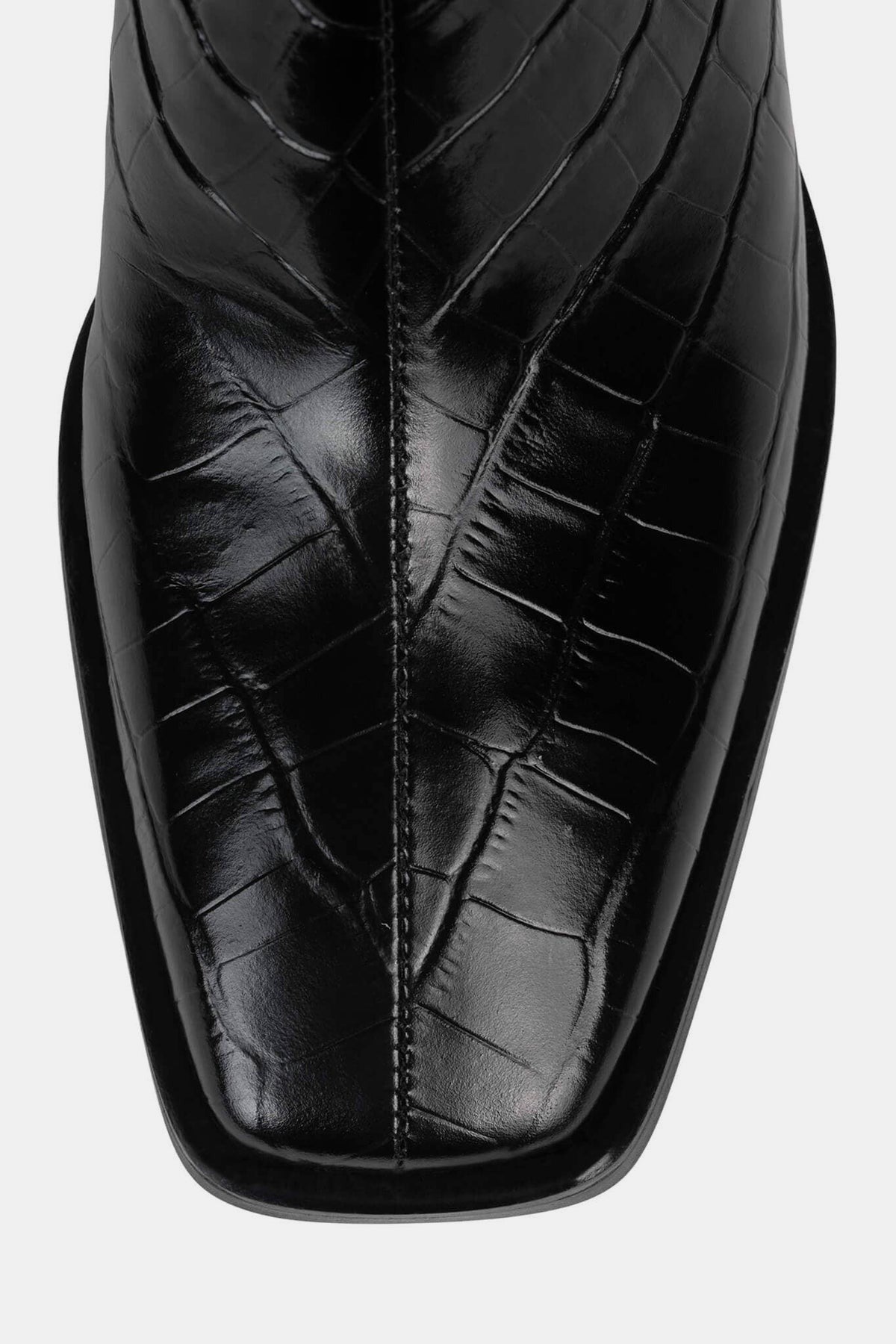 Elevate any outfit with the Black Croco Patent Sherpal 2 Ankle Boots. Featuring a block heel, zipper closure, and leather upper, these stylish boots are perfect for any occasion. The leather and fabric lining and synthetic sole provide comfort and stability, while the 2.75" heel adds just the right amount of height. (Sherp your way through any event in these patent boots!)
