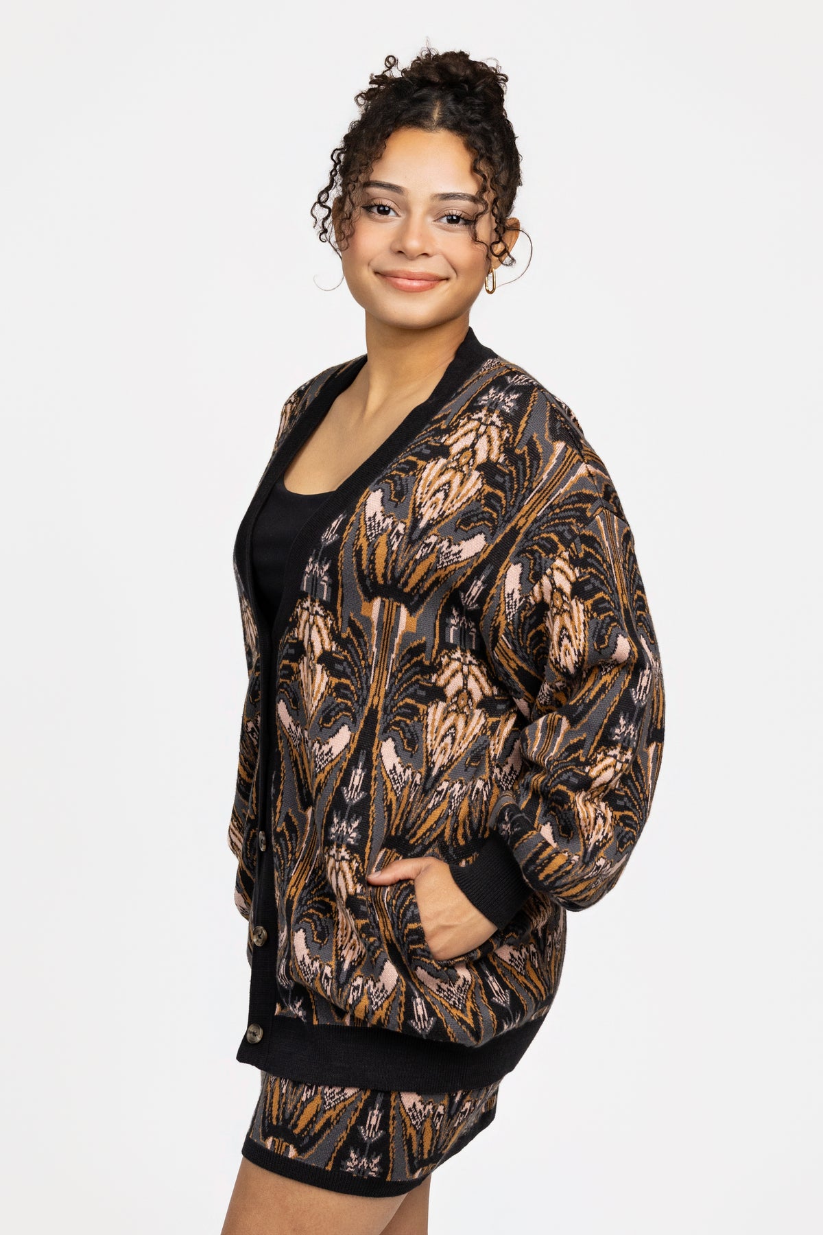 The Devon Print Jocelyn Cardigan is an easy layer with just the right mix of comfort and charm. Crafted from 100% cotton, it’s soft and breathable with a relaxed fit, a button-front closure, and a playful autumn-ready print that feels both cozy and fresh.