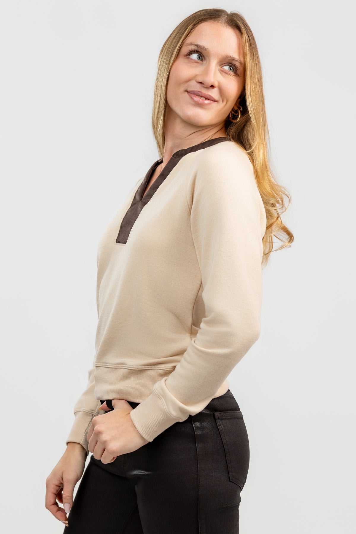 The Cream Lounge Top is soft, simple, and easy to live in. Cut from a smooth knit with a relaxed drape, it’s finished with clean edges and subtle structure for a refined take on everyday comfort.